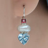 Fanny Kemble Blue Topaz, Freshwater Pearl and Rhodolite Garnet Silver Earrings