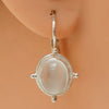 A graceful unity of design and stone. These moonstone earrings connect the modern world with the glories of the past.