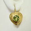 A faceted peridot is mounted in a heart-shaped vermeil setting in these sentimental Victorian earrings.