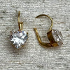 きらめくキュービックジルコニアのハートのように、夕方からスタートします。 24Kゴールドとスターリングシルバーのセッティング。ピアス用のヨーロッパのバック。サイズ:3/4インチ。