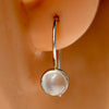 925 sterling silver is handworked to encircle a moonstone. French Hook with safety catch for pierced ears. Size: 5/8 in tall (1.6 cm) including ear hook.
